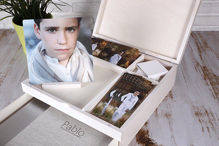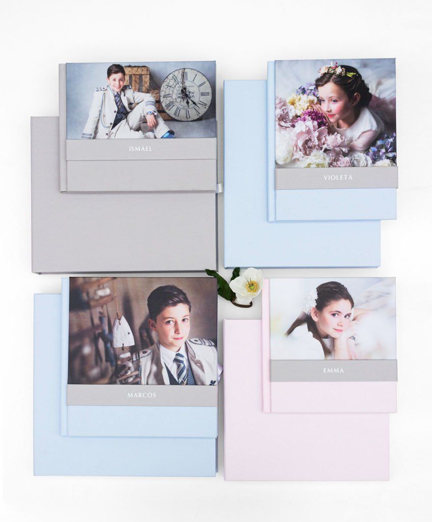 Como presentamos nuestros reportajes de comunión es muy importante para nosotros. Por eso disponemos de un amplio catálogo de álbums de comunión con cubierta totalmente personalizable. El interior estará compuesto por las mejores fotografías de la sesión de fotos de comunión maquetadas y diseñadas de forma totalmente personal sin plantillas predeterminadas.